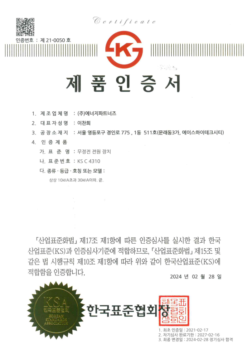 국가 인증으로 검증된 기술력과 품질 경쟁력